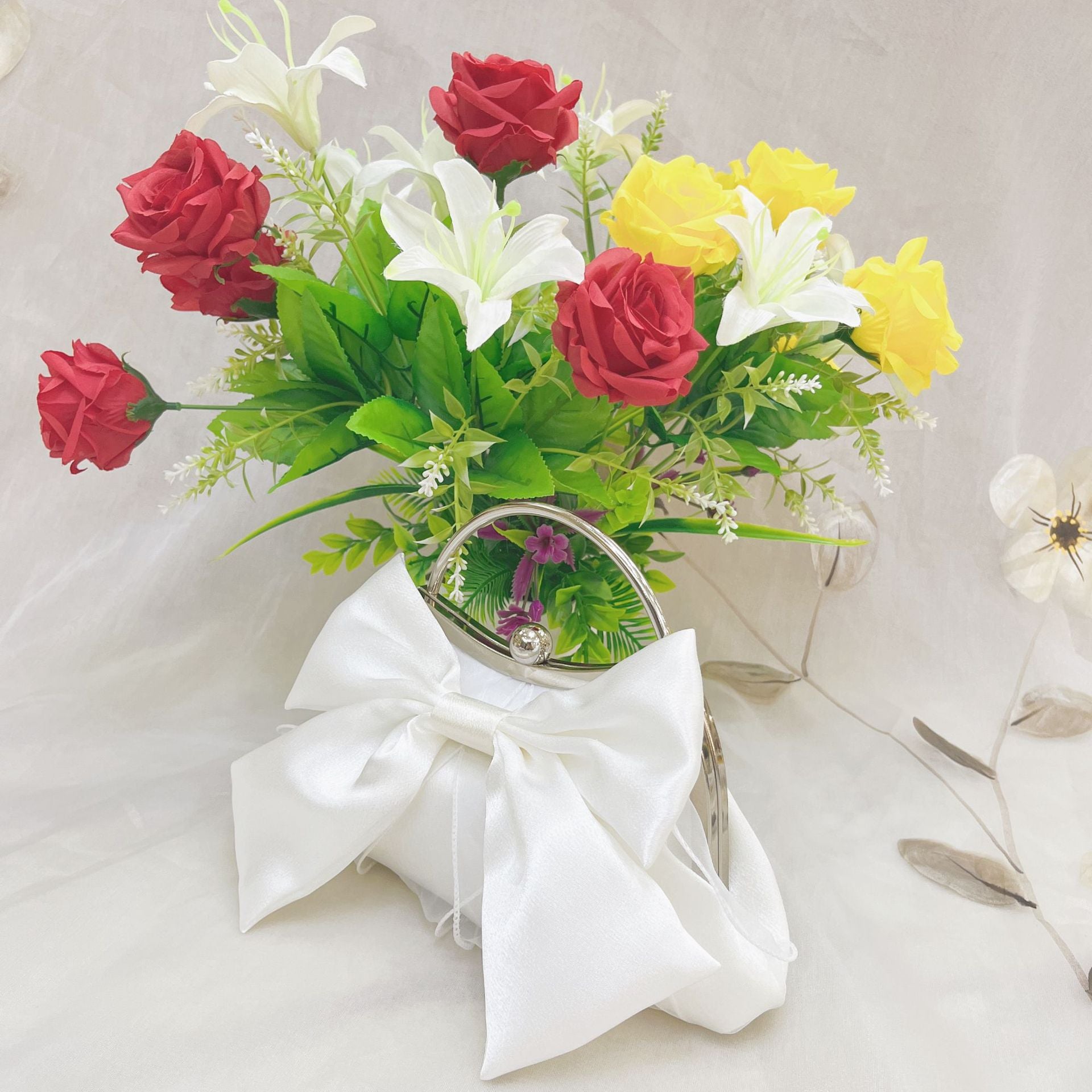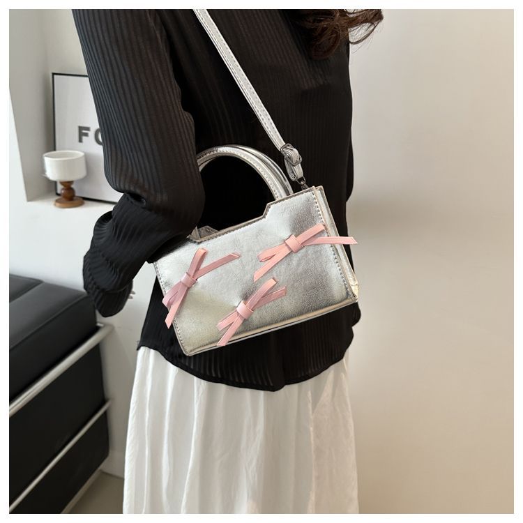 Túi xách cầm tay nơ màu bột sáng màu bạc